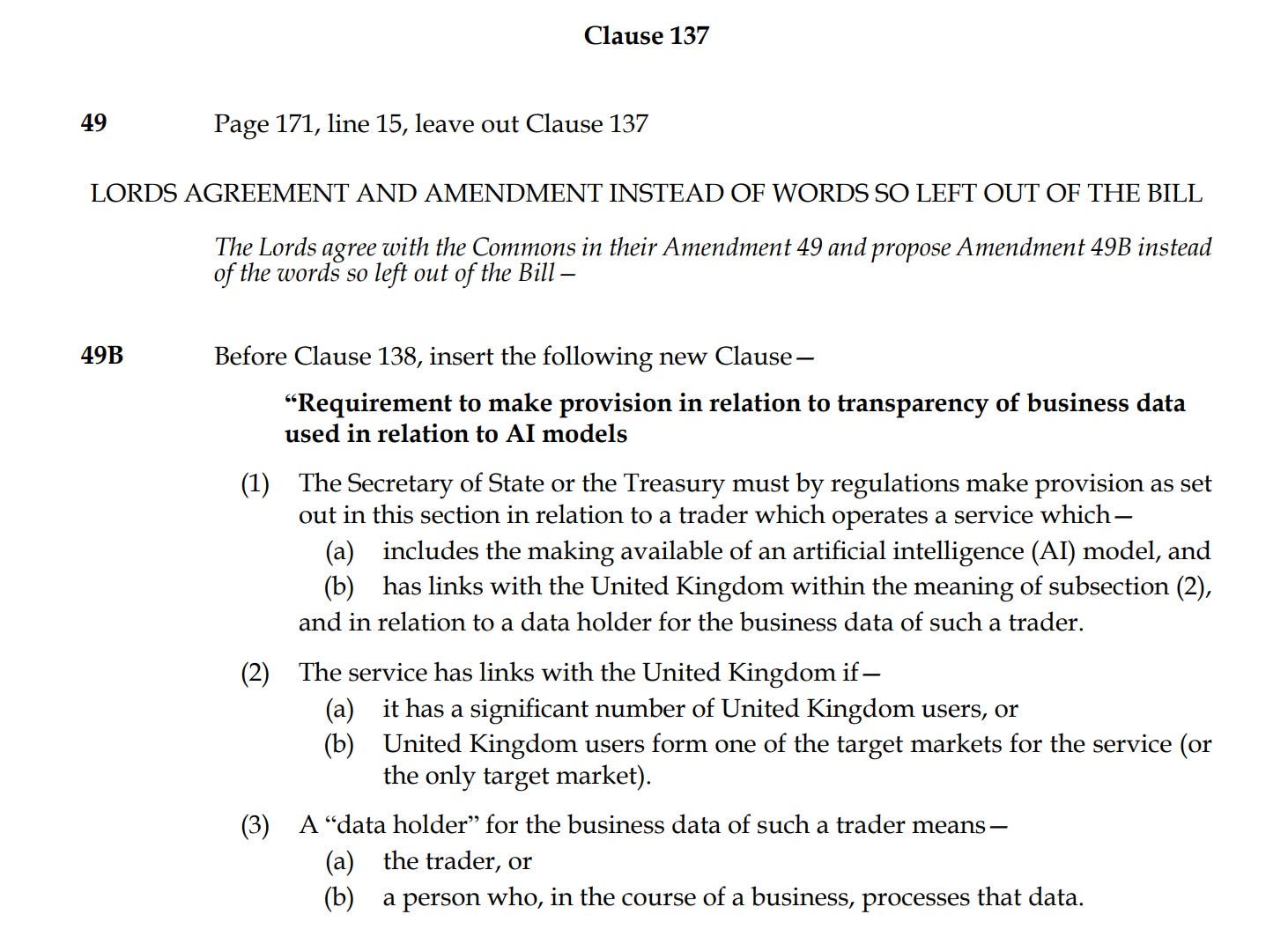 Under the new amendment proposed by the House of Lords, any trader that makes an AI model available and operates in the UK must comply with new transparency rules.