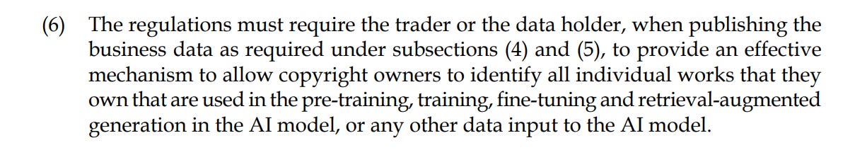 In one clause, the legislation even asks for a clear mechanism that helps people identify their individual works.