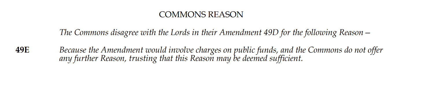 The House of Commons were less keen on this reform. They pushed back insisting that the said the changes could be expensive.