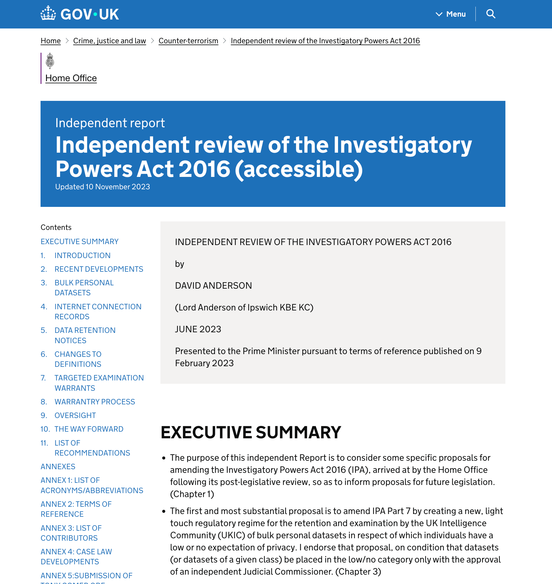 Independent reviews (such as the Anderson Report) suggest further reforms to create agility for intelligence agencies and law enforcement, including new regimes for bulk personal datasets and improved definitions of internet connection records.