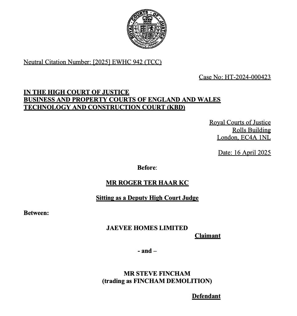 💷 The court also dealt with prior enforcement proceedings. It upheld an earlier adjudicator’s ruling requiring Jaevee to pay £137,472.12, after deducting a prior cost order, plus legal fees of £22,971.20.