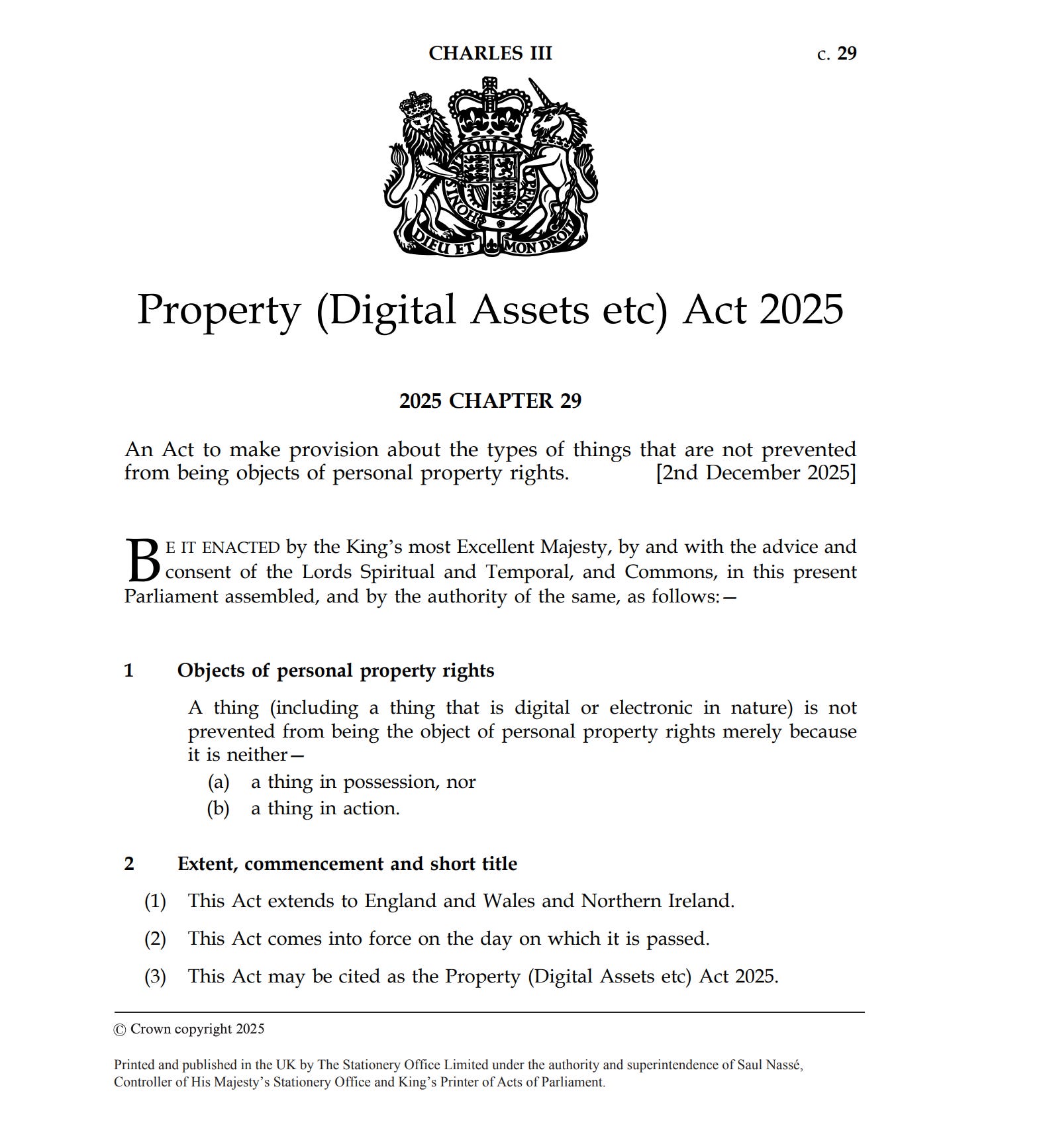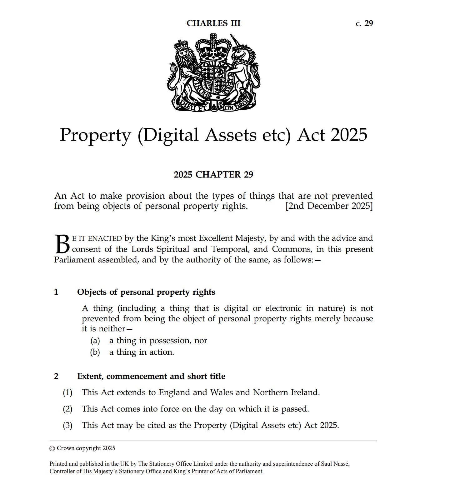 What the Property (Digital Assets etc) Act 2025 Means for Your Cryptoassets