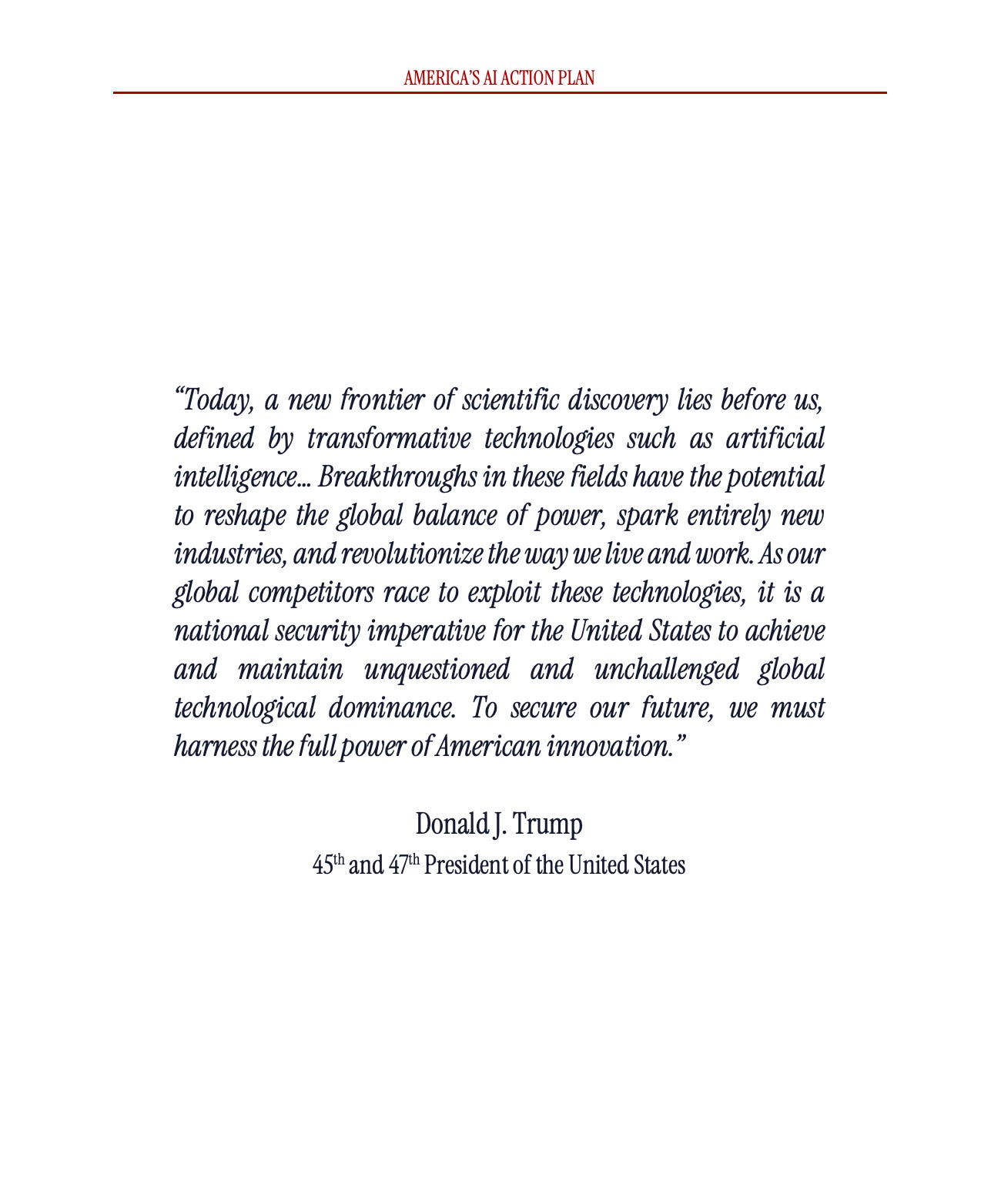 It is presented as a decisive national roadmap and comes directly from Executive Order 14179 that required the government to dismantle barriers to American leadership in this area.