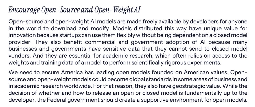 I really appreciated how you covered the innovation pillar. The section on open models stood out to me because it is not a topic that gets much attention in the general press. It is clear that smaller companies and researchers will need those open models if they are going to keep up with the pace of change.
