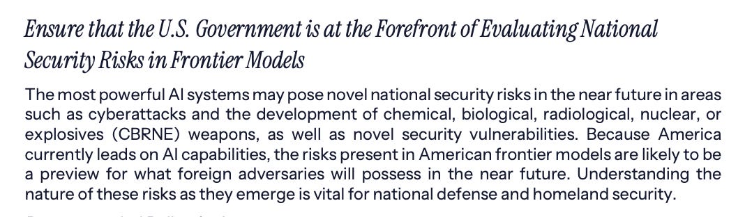 Finally, there is a focus on the risks that arise from the most advanced models themselves.