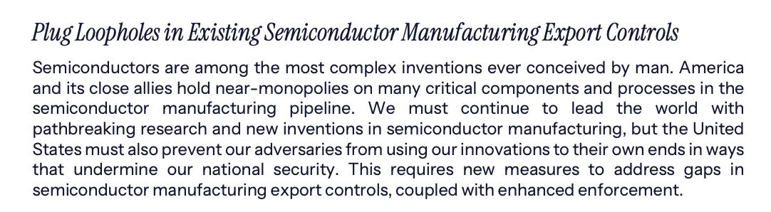 It also outlines measures to close gaps in current controls, particularly those that apply to the component parts of manufacturing equipment.