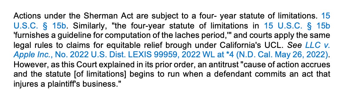Courts place strict time limits on when a company can bring a case. This is called the statute of limitations. In general, an antitrust claim must be brought within four years from the time the harm occurred.